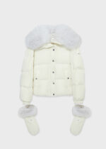 QUILTED DOWN JACKET WITH FUR COLLAR AND HOODED